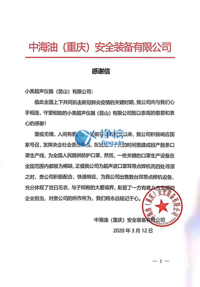 是的,這是我們小美超聲!抗擊疫情,我們不是旁觀者。我們與時間賽跑,推掉別的訂單,爭分奪秒加班加點的為中海油生產口罩耳帶點焊機。員工24小時兩班倒,靠吃泡面節省時間。力求在最短的時間內把口罩機交到中海油的手上,大大提高了其口罩生產的產量。